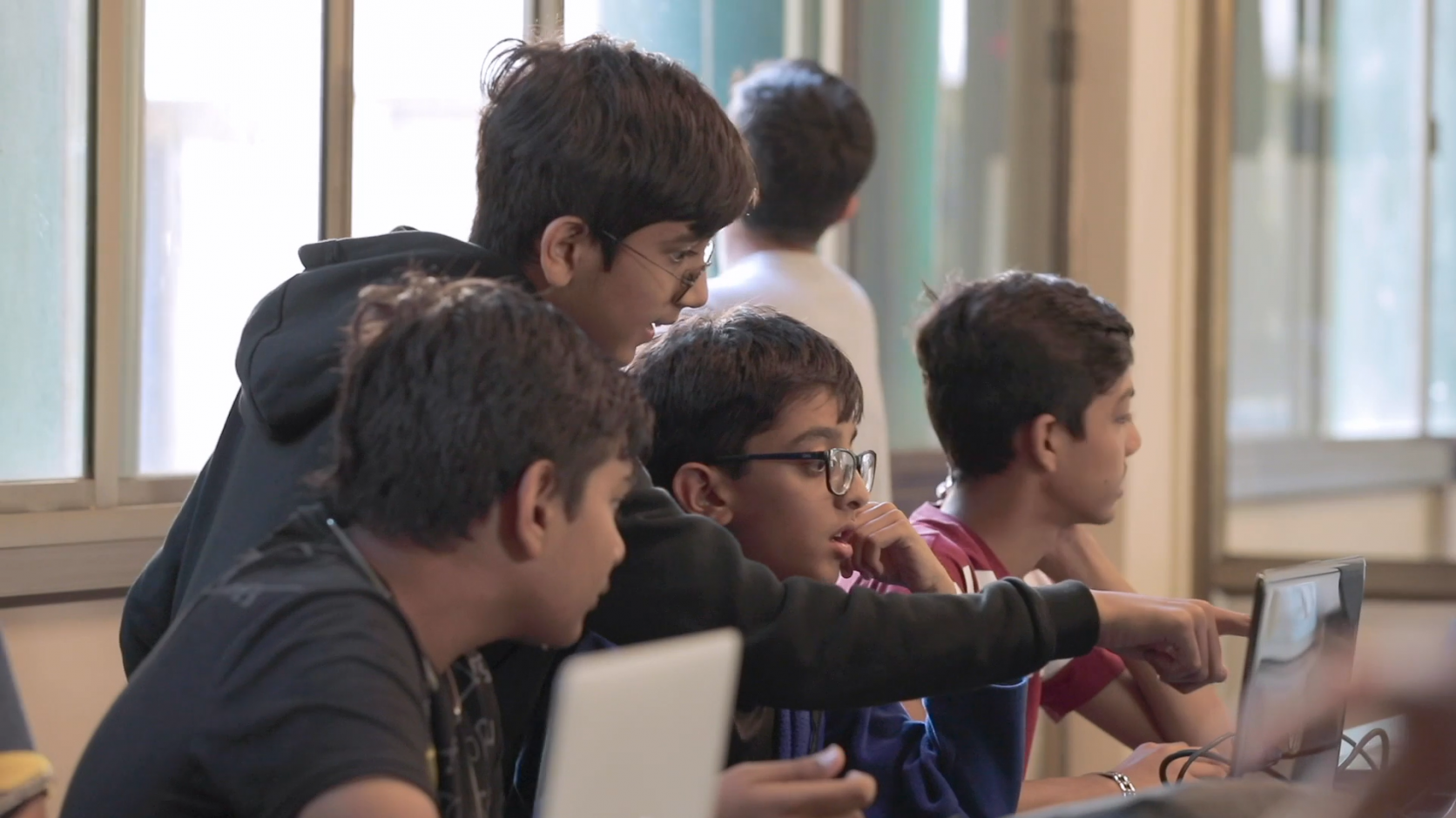 Ici, Ahan et Aadit présentent Minecraft, leur jeu vidéo préféré à leur classe. Durant leur exposé, ils vont transmettre leur passion pour ce jeu « Bac à sable », c’est-à-dire de construction et montrer en quoi Minecraft peut permettre d’exprimer sa créativité.